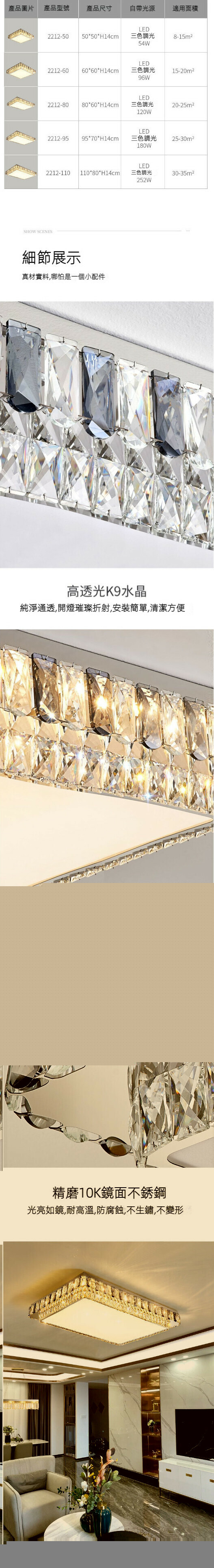 爆款簡約水晶led吸頂燈(長方形95x70CM)【三色變光】