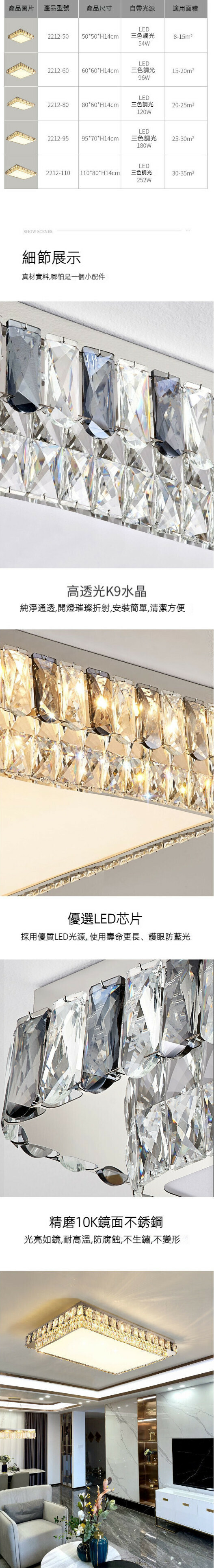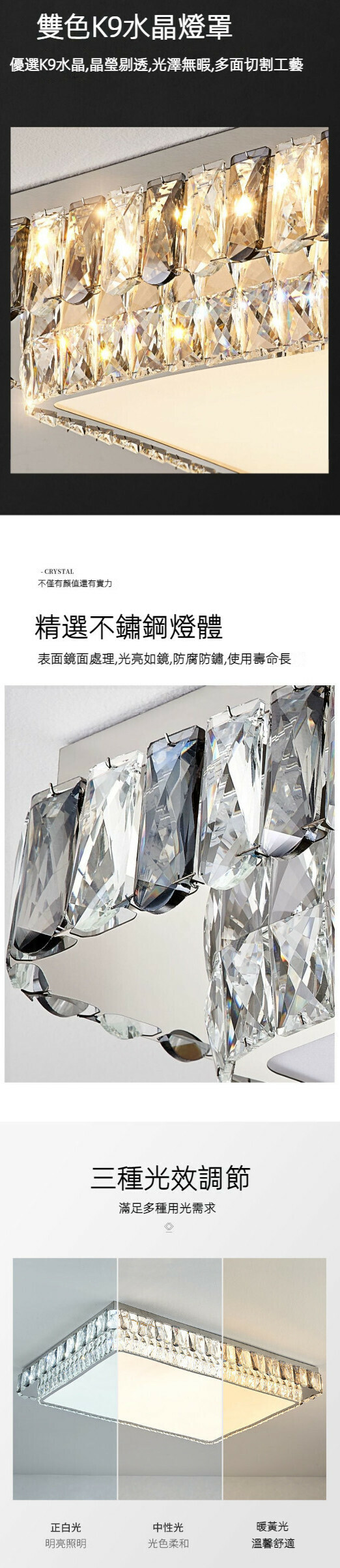 爆款簡約水晶led吸頂燈(方形50x50cm)【三色變光】