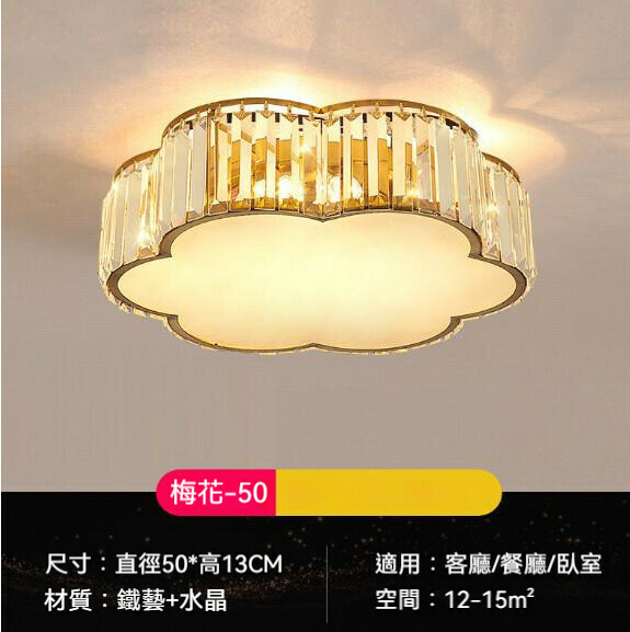爆款簡約護眼水晶LED吸頂燈(梅花典雅金-50cm)【三色變光】