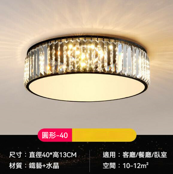 爆款簡約護眼水晶LED吸頂燈(圓形典雅黑-40cm)【三色變光】