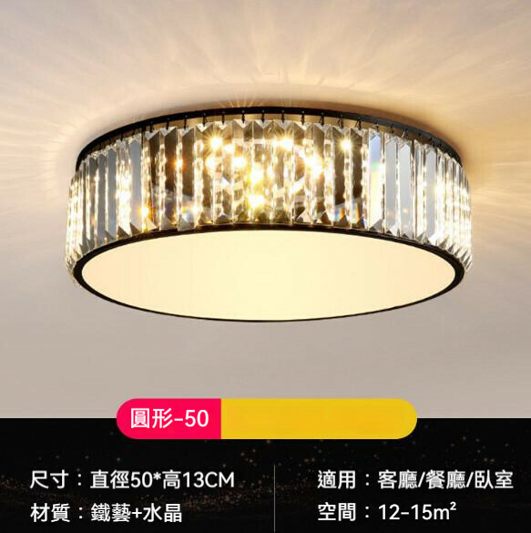 爆款簡約護眼水晶LED吸頂燈(圓形典雅黑-50cm)【三色變光】