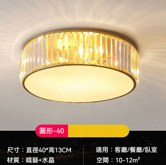 爆款簡約護眼水晶LED吸頂燈(圓形典雅金-40cm)【三色變光】