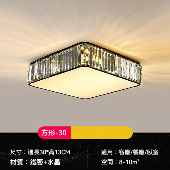 爆款簡約護眼水晶LED吸頂燈(方形典雅黑-30cm)【三色變光】