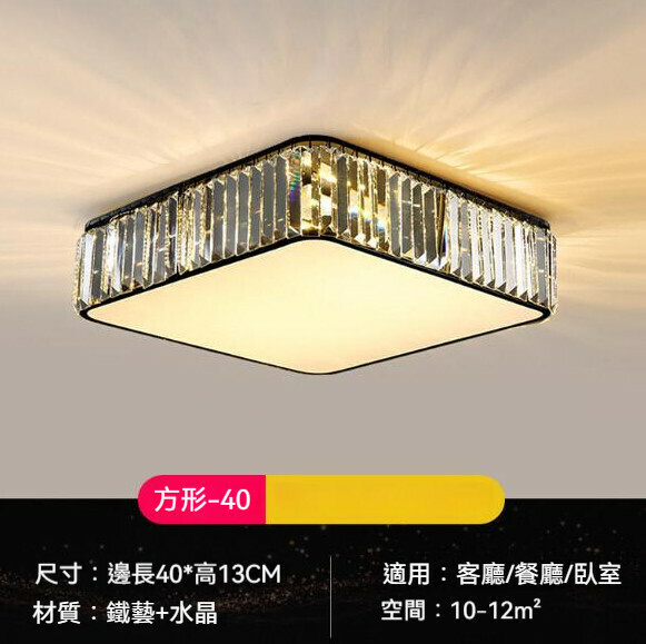 爆款簡約護眼水晶LED吸頂燈(方形典雅黑-40cm)【三色變光】