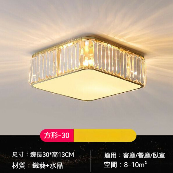 爆款簡約護眼水晶LED吸頂燈(方形典雅金-30cm)【三色變光】