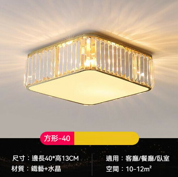 爆款簡約護眼水晶LED吸頂燈(方形典雅金-40cm)【三色變光】