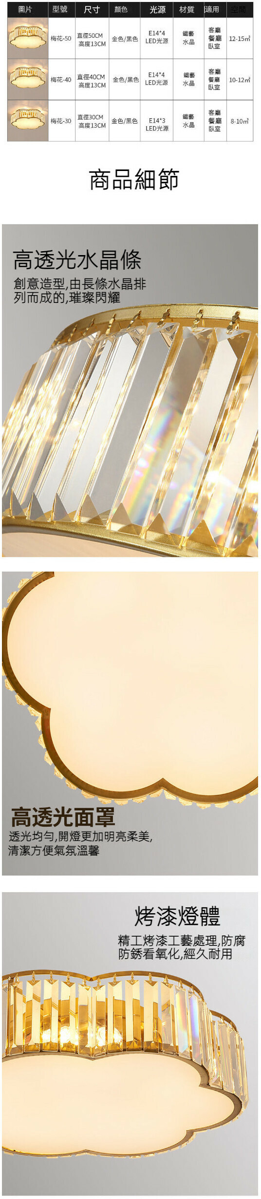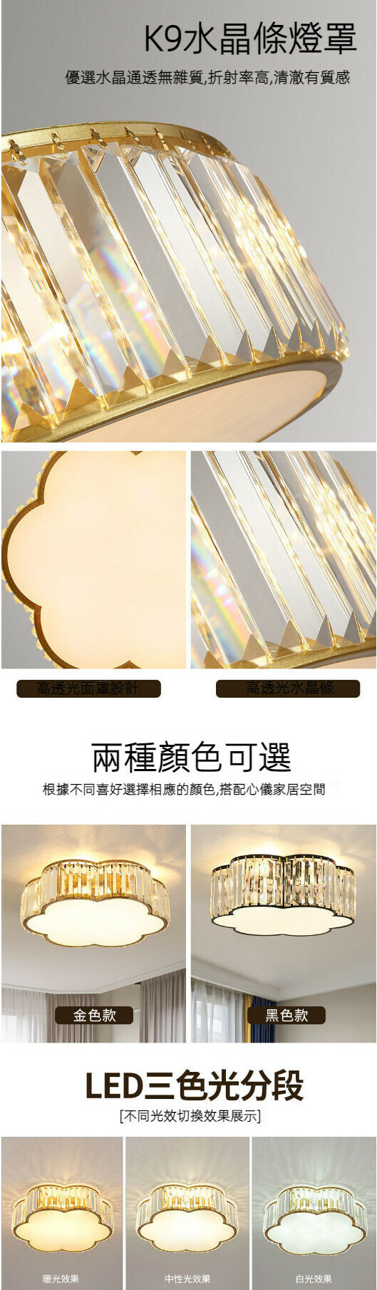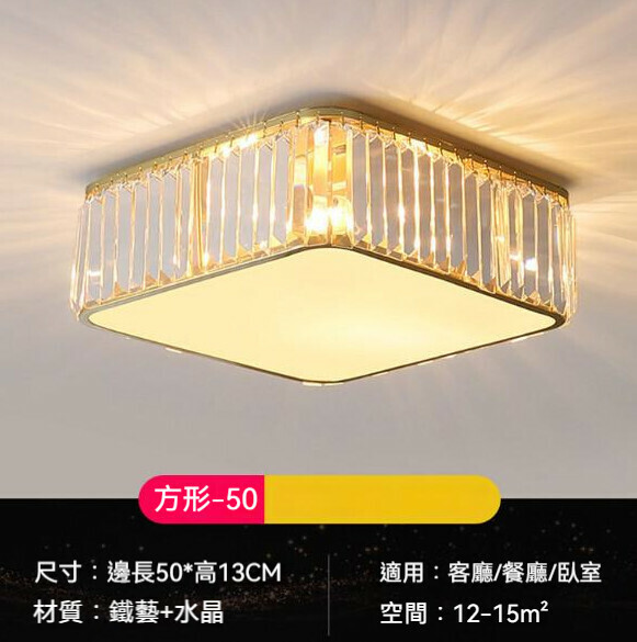 爆款簡約護眼水晶LED吸頂燈(方形典雅金-50cm)【三色變光】