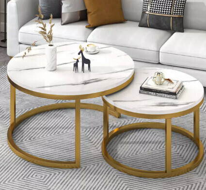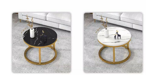 熱推簡約圓桌茶幾(黑色大理石紋+金色架)【尺寸:長70cm*寬70cm*高45cm】