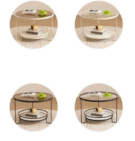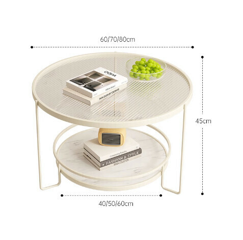 爆款簡約圓形玻璃茶几(米白色-茶色玻璃)【尺寸:直徑70*高45cm】