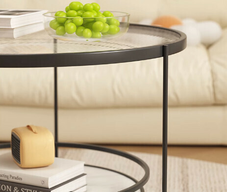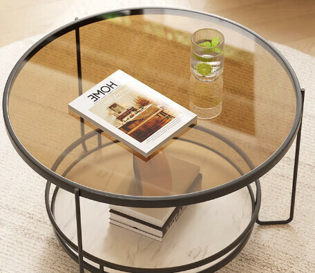 爆款簡約圓形玻璃茶几(米白色-茶色玻璃)【尺寸:直徑80*高45cm】