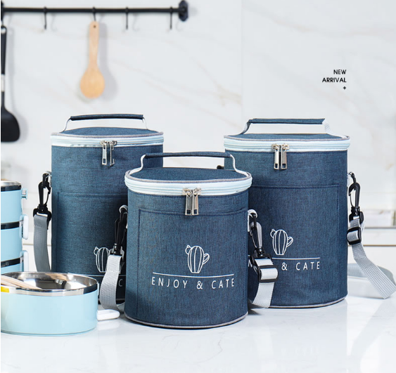 爆款簡約圓形手提保溫便當包(灰色大號)(尺寸:20*24cm)