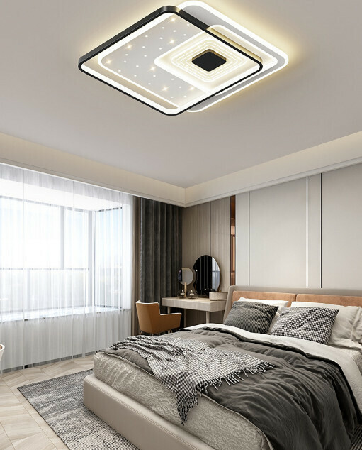 爆款簡約星空創意吸頂燈(全白方形50cm)【LED三色變光】