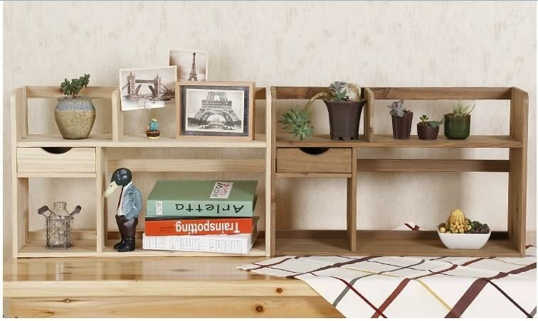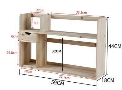 爆款簡易收納書架(原木色雙層書架(長59CM,寬18CM,高44CM)