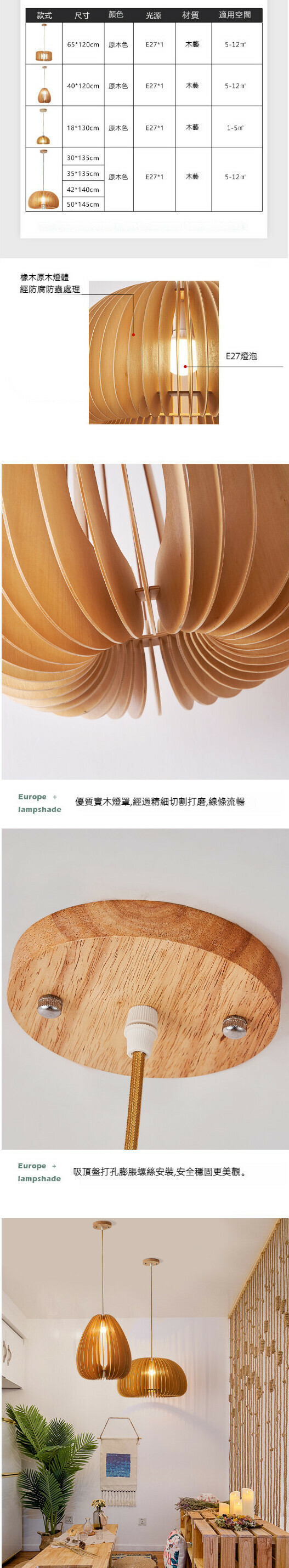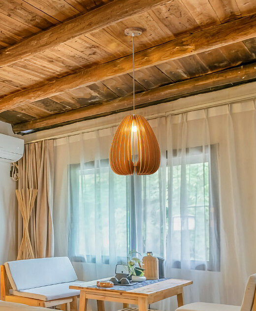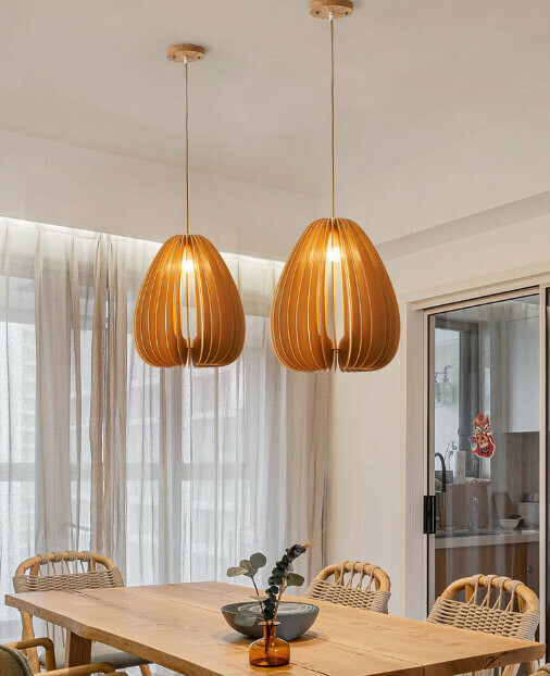 爆款簡約木藝吊燈(南瓜款30cm)【LED三色變光】