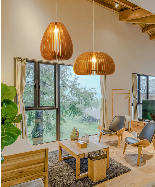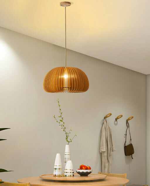 爆款簡約木藝吊燈(南瓜款50cm)【LED三色變光】