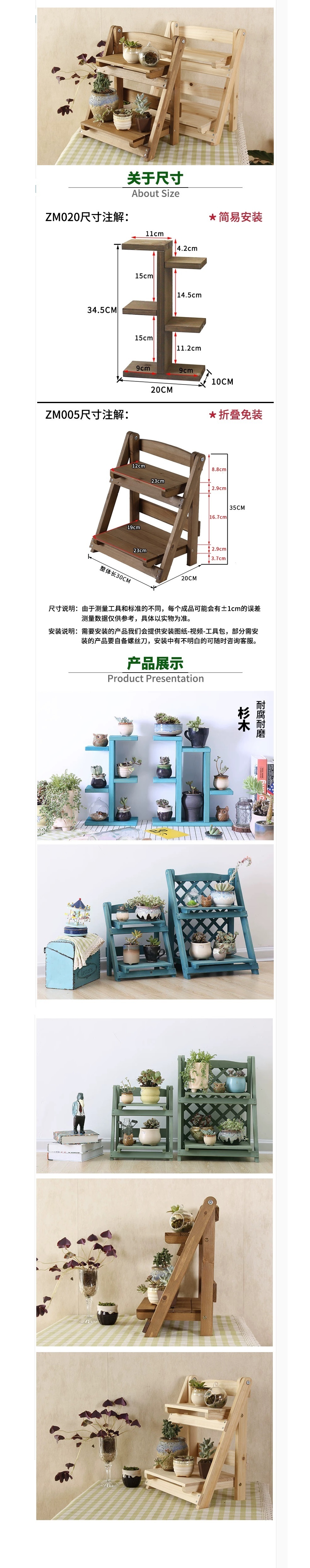 爆款簡約木質花架子(ZM005 兩層小號復古藍色 35*20*30CM)
