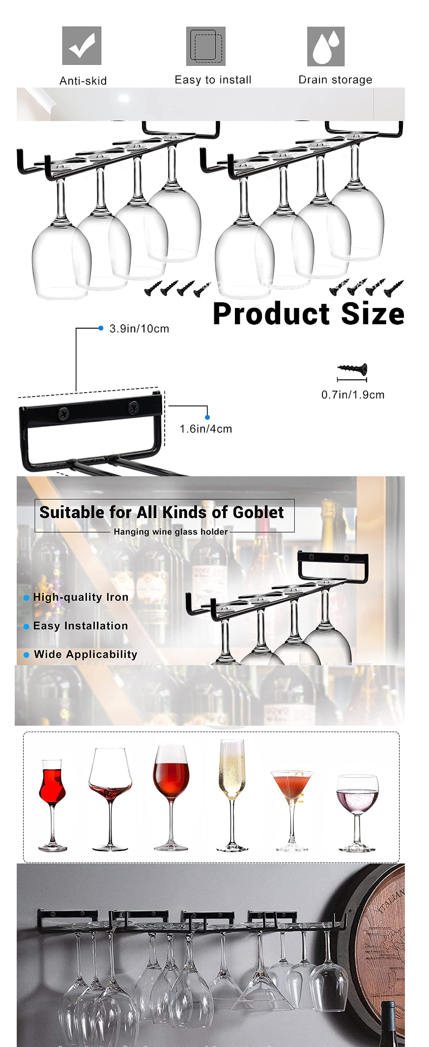 爆款單排倒掛鐵藝酒杯架高脚紅酒杯架(黑色,單排30釐米)