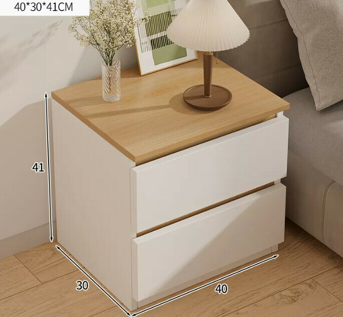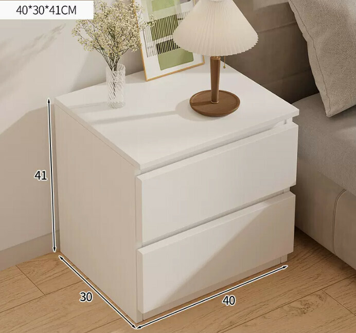 爆款小型床頭櫃簡約(加大款-雙抽暖白色)