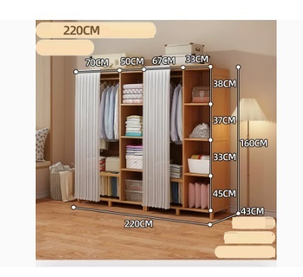 爆款小戶型衣櫥(組合款-白帘款 220*43*160CM)
