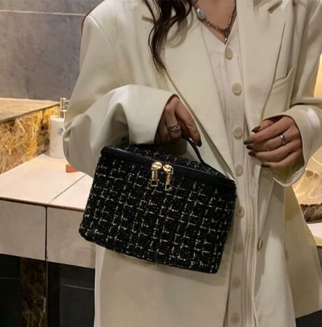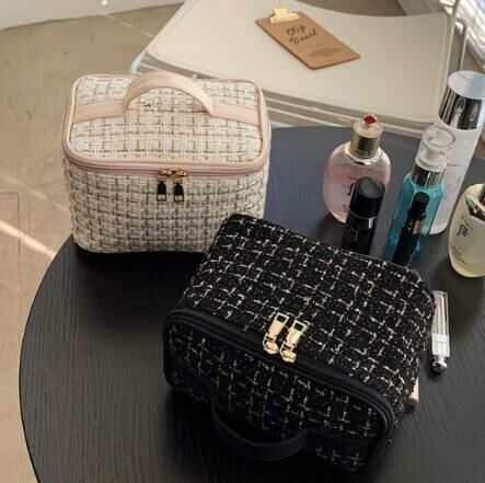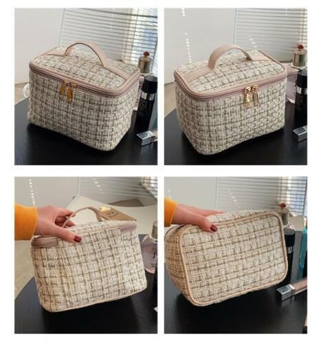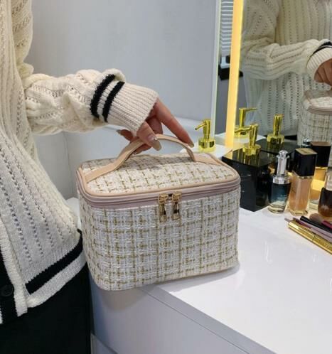爆款小香風大容量洗漱收納包(米白 尺寸14cm*14cm*22cm)
