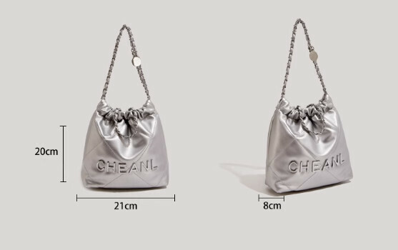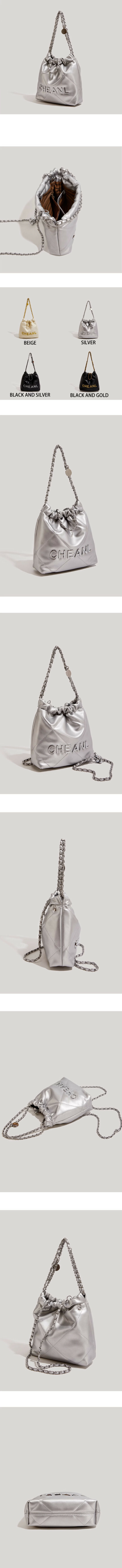 爆款小香風菱格鏈條pu皮水桶包(銀色)