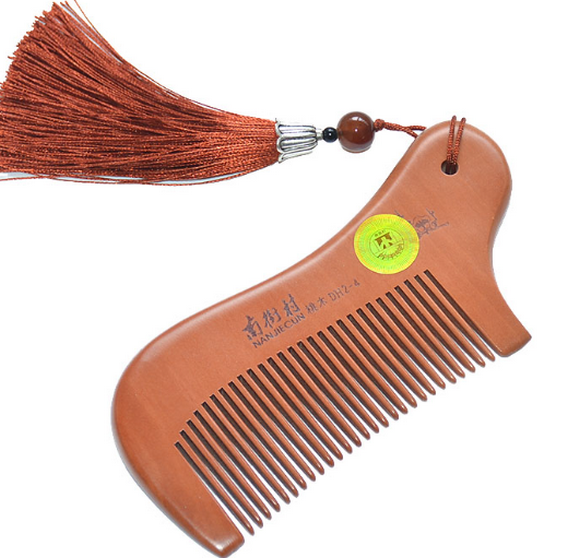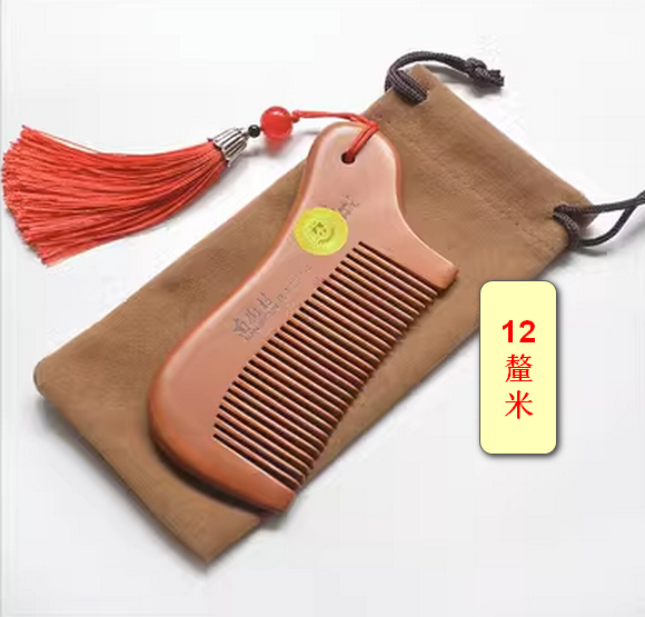 爆款桃木梳子小號(墨綠(布袋裝)總長12釐米)