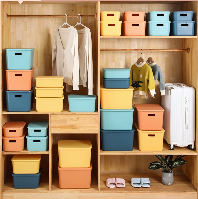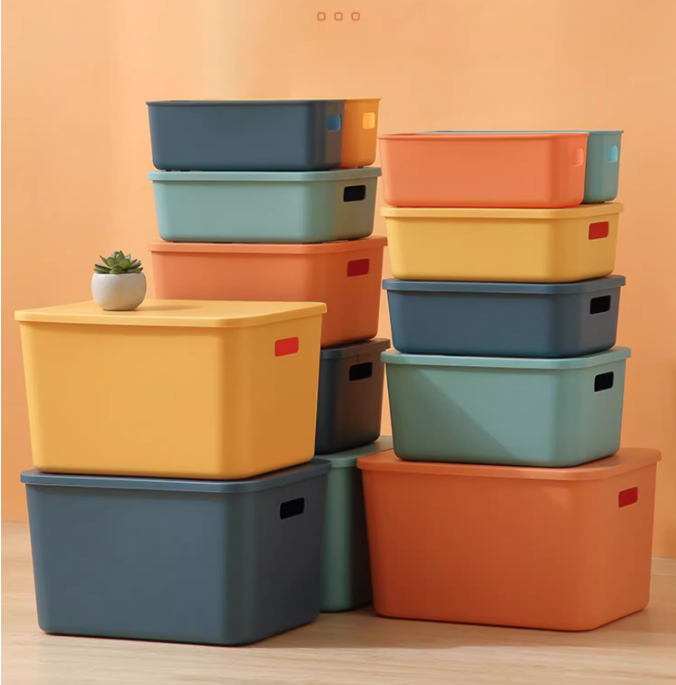 爆款純色磨砂塑料雜物無蓋收納箱(櫻草黃)(尺寸:27.5*10.5*9.6CM)