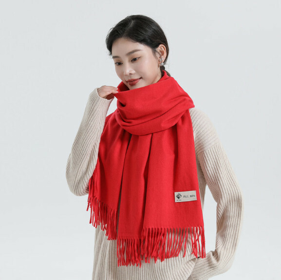 爆款純色百搭羊絨圍巾(米白色)(尺寸:200*70cm)