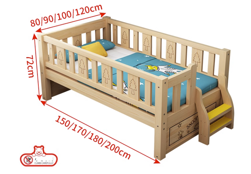 爆款實木兒童床(180*100三尾+3CM針織椰棕床墊)