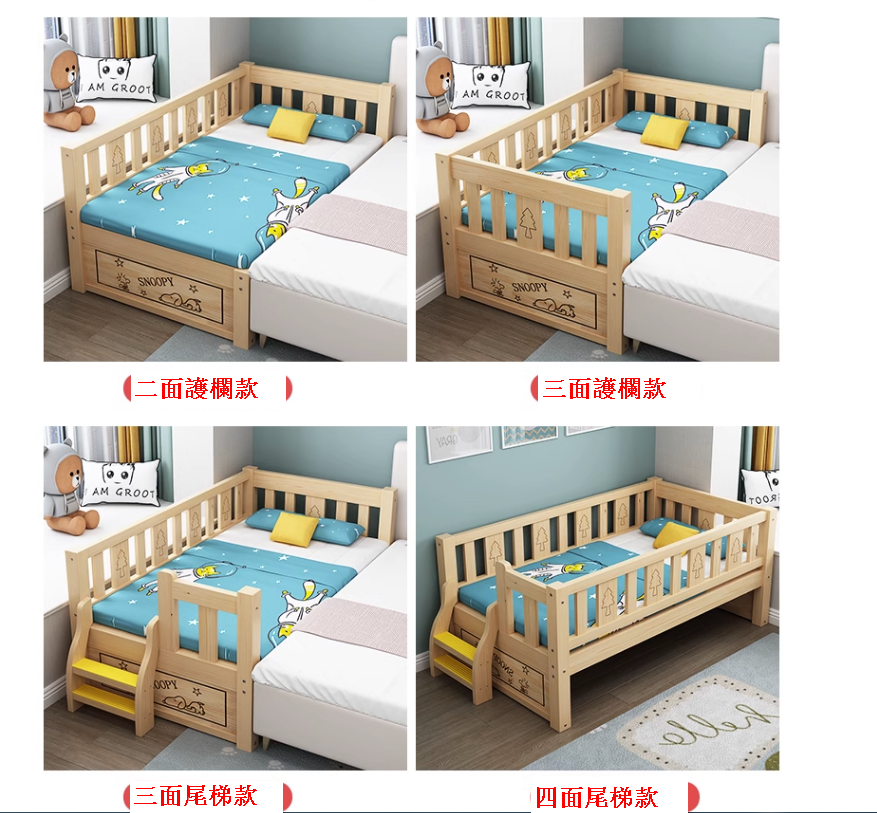 爆款實木兒童床(200*100四尾+3CM針織椰棕床墊)