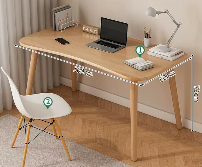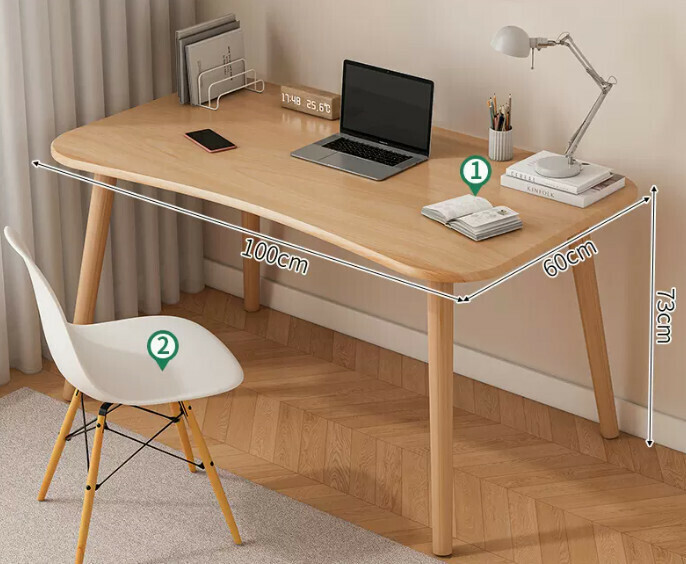 爆款電腦桌臺式實木(【桌椅組合款】弧形原木色+實木腿 )
