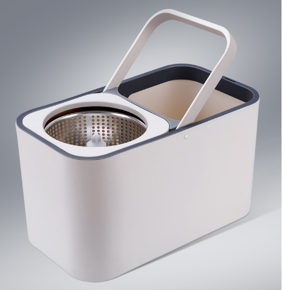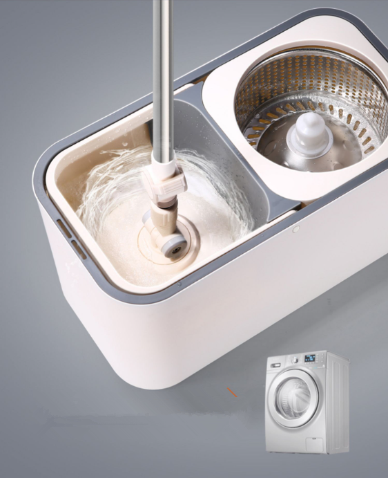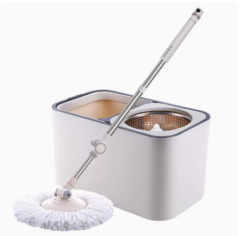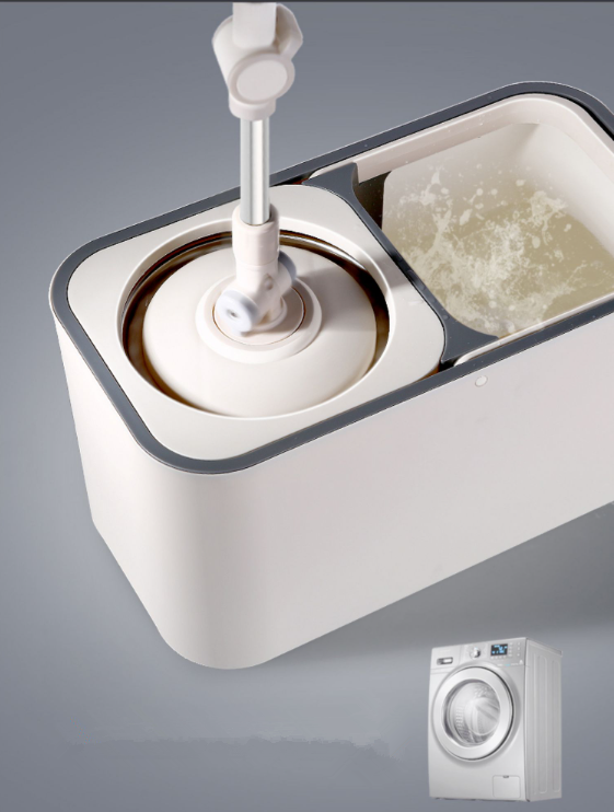 爆款旋轉拖把(白色)(加強桿+塑膠盤+金屬籃+2個拖把頭)(規格:拖把桶尺寸:45*24.5*24.5CM,伸縮桿長度:99-127CM)