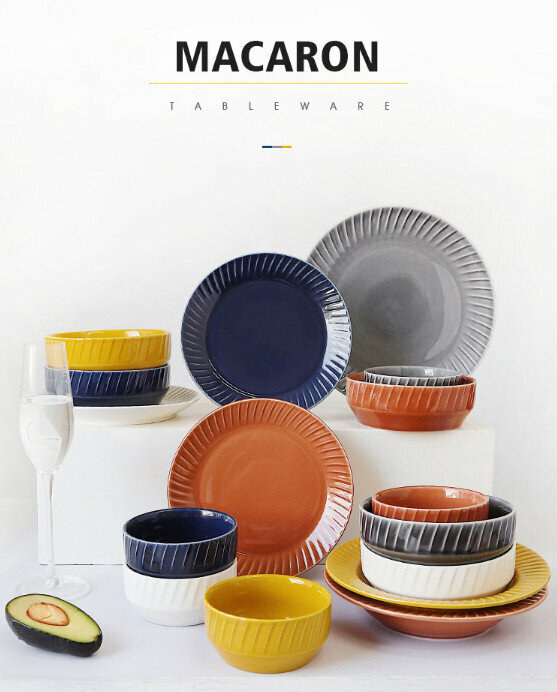 爆款螺旋紋色釉陶瓷碗(5.5英寸麵碗-藍色)