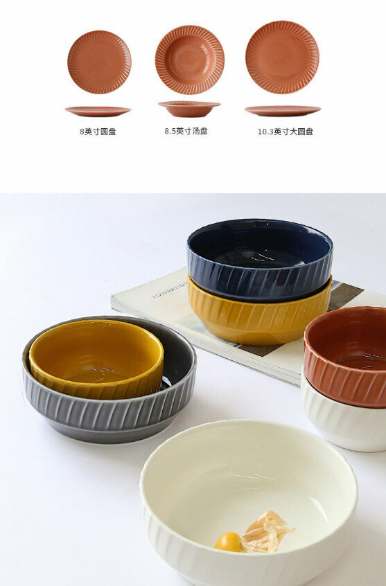 爆款螺旋紋色釉陶瓷盤(10.3英寸大圓盤-白色)