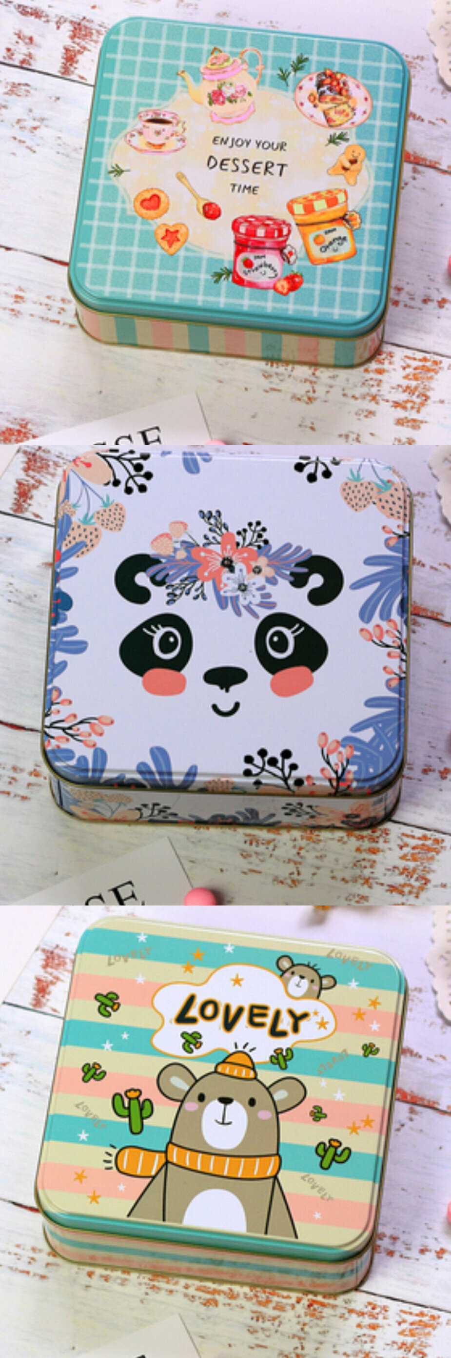 爆款正方形餅乾收納鐵盒 (03)(長15cm*寬15cm*高5.6cm )