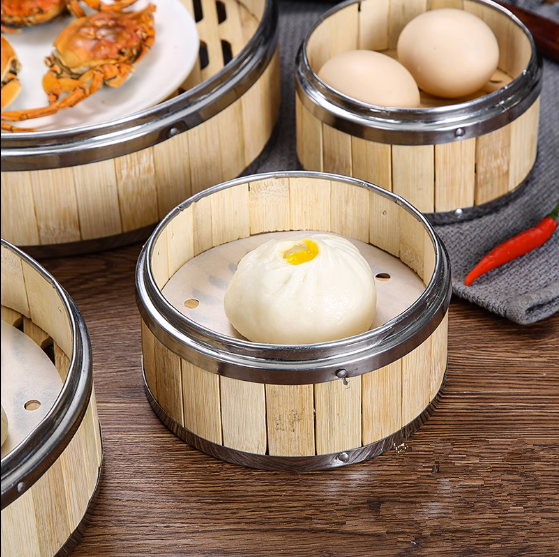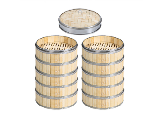 爆款不銹鋼包邊竹蒸籠(十籠壹蓋)(規格:3.5寸-8寸)(下單後請聯絡客服確認發貨尺寸)