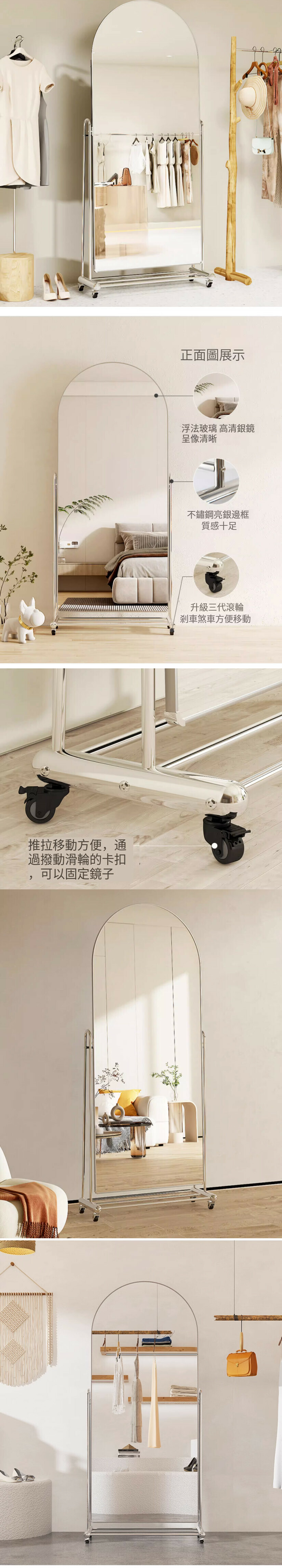爆款不鏽鋼可移動落地鏡(218*128cm普通款)