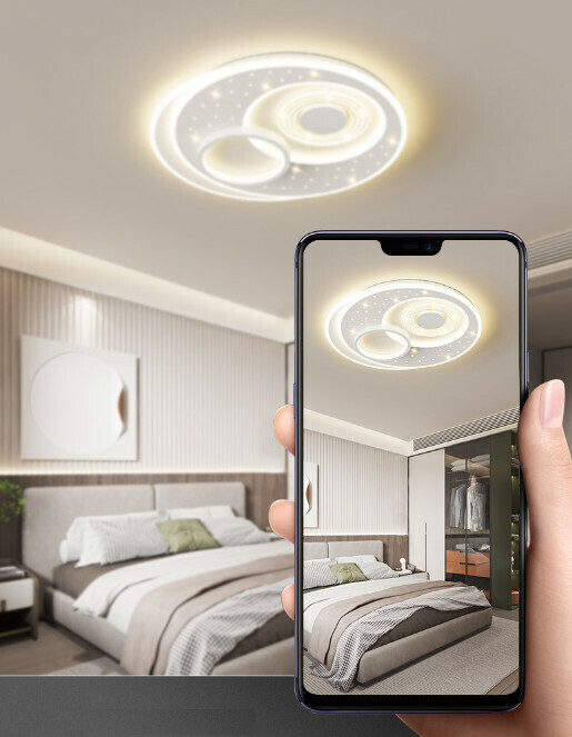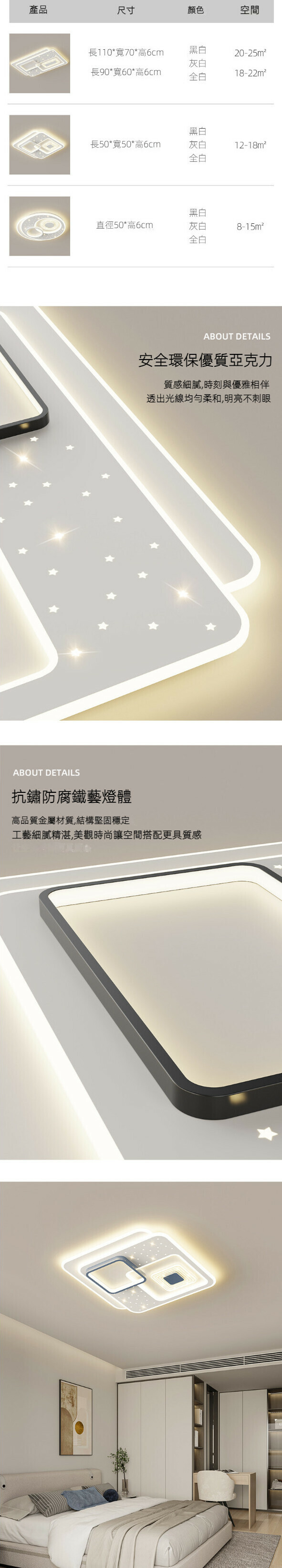 爆款星空簡約吸頂燈(灰白圓形50cm)【LED三色變光】