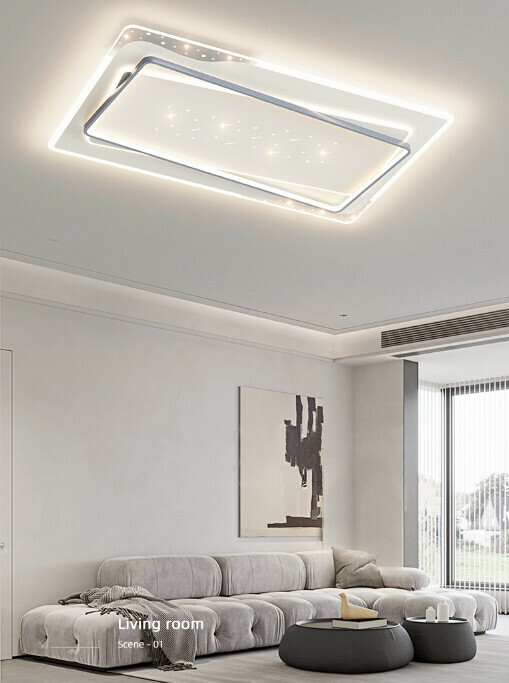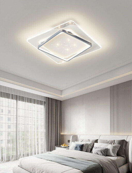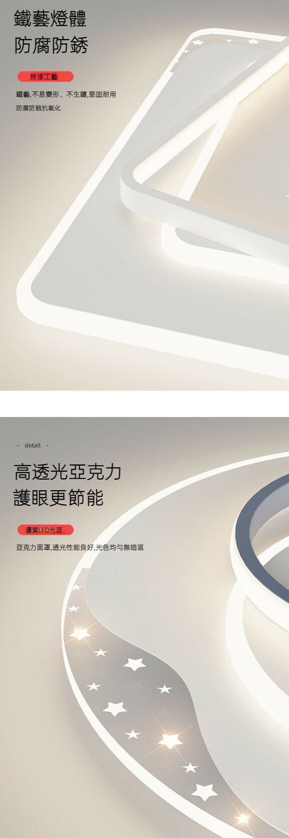 爆款星空簡約吸頂燈(灰色方形50cm)【LED三色變光】
