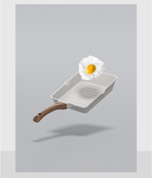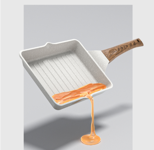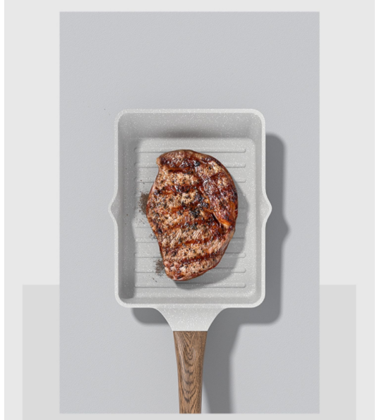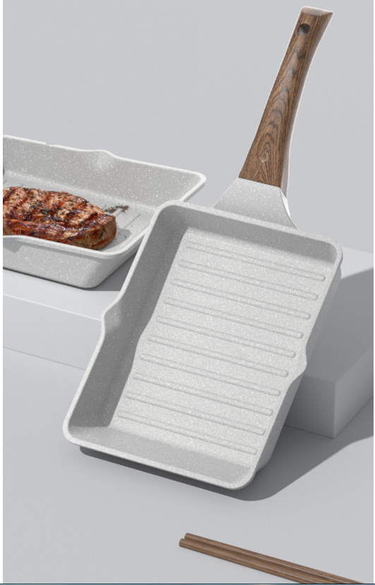 爆款條紋牛排煎鍋小麥飯石不粘鍋平底鍋加牛排夾電磁爐適用(淺灰色)