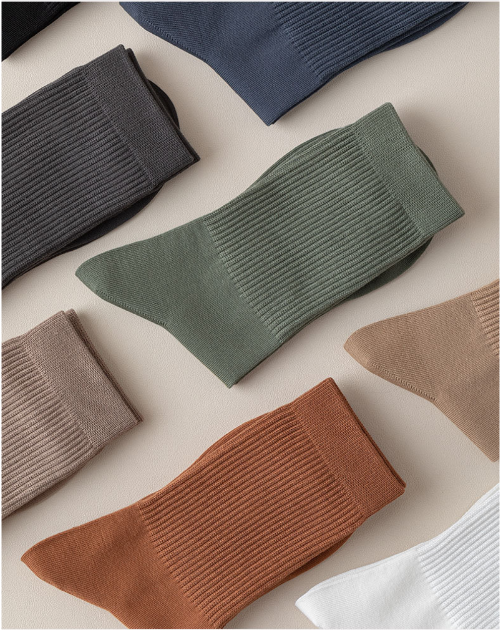 爆款(2雙裝)男純色全棉中筒襪(軍綠)(均碼)
