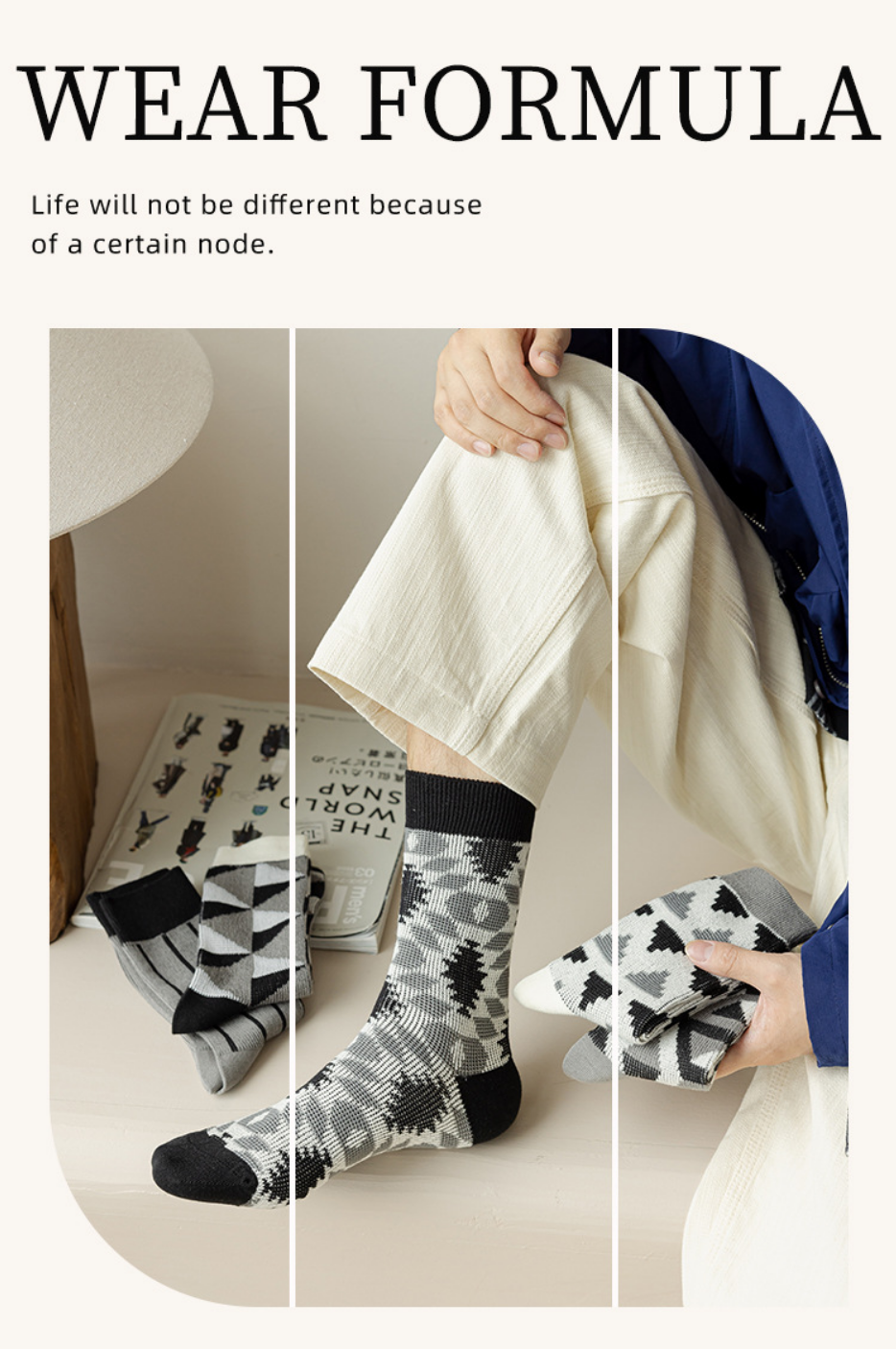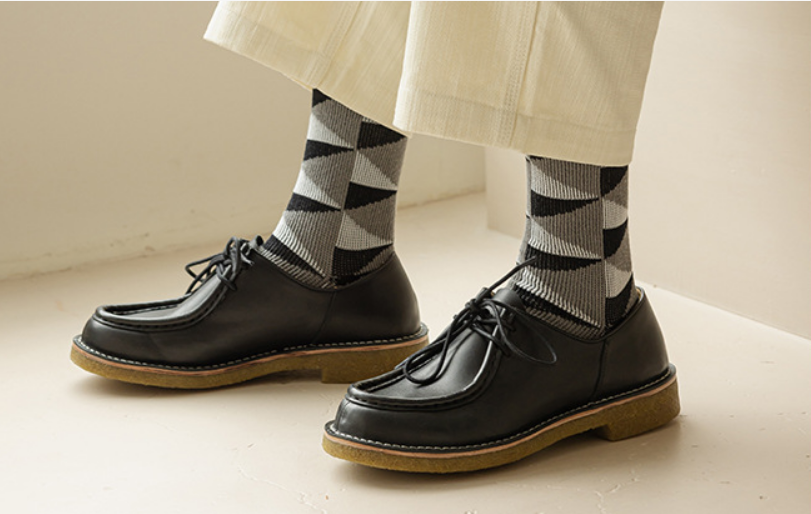 爆款(2雙裝)男復古休閒中筒襪(深灰羅口)(均碼)