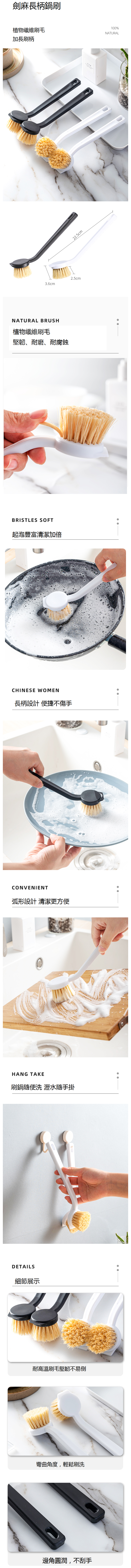 爆款【2個】長柄天然劍麻鍋刷(白色)