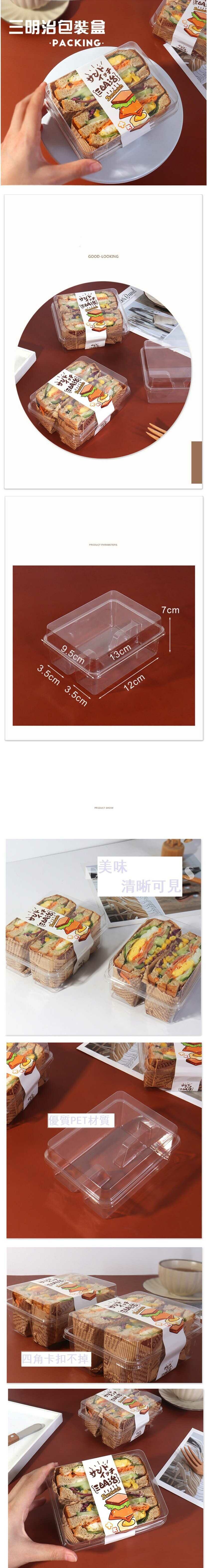 爆款(50套)透明隔層三明治打包盒(三明治打包盒+貼紙)