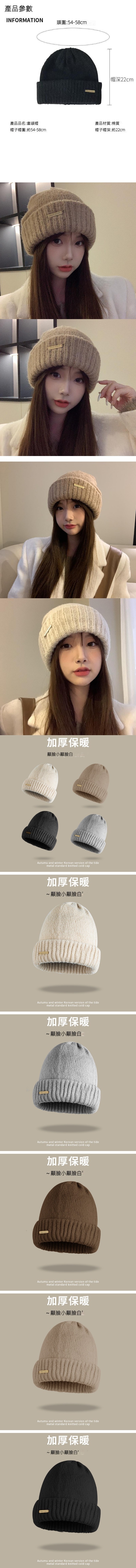 爆款金屬標寬鬆加厚針織帽(A-391CHT黑色)