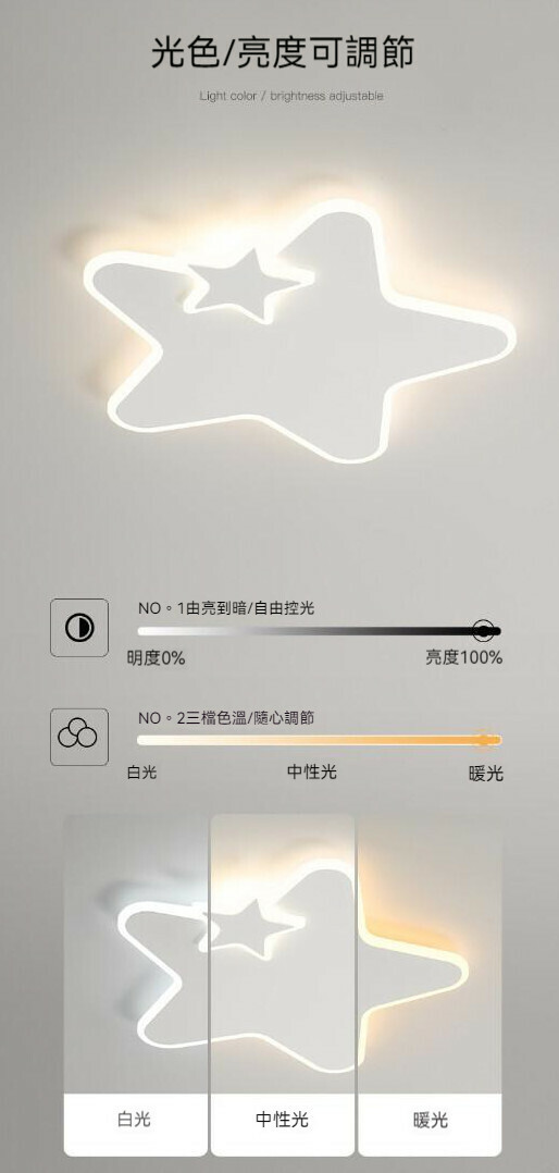 爆款大氣奶油風吸頂燈(星星B款50cm)【LED三色變光】