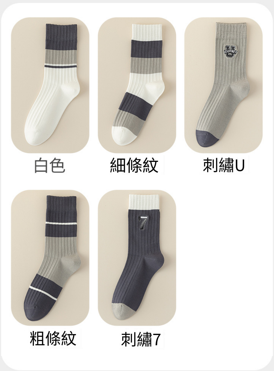 爆款(2雙裝)男生手縫無骨中筒棉襪(粗條紋)(均碼)