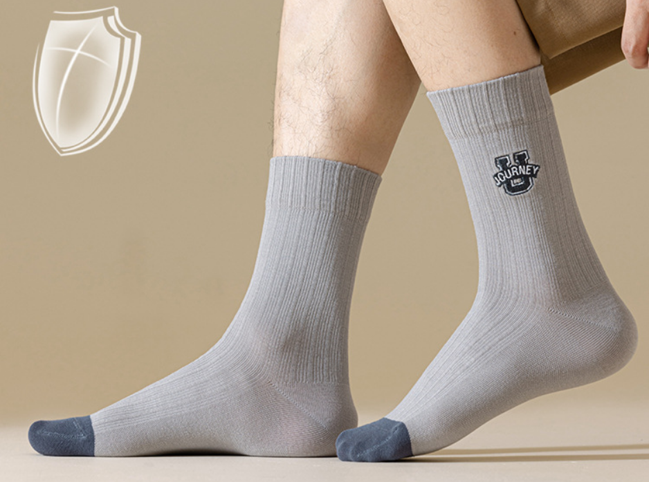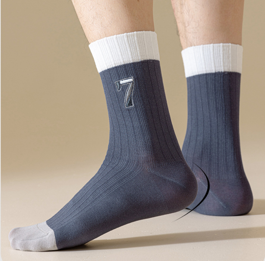 爆款(2雙裝)男生手縫無骨中筒棉襪(白色)(均碼)