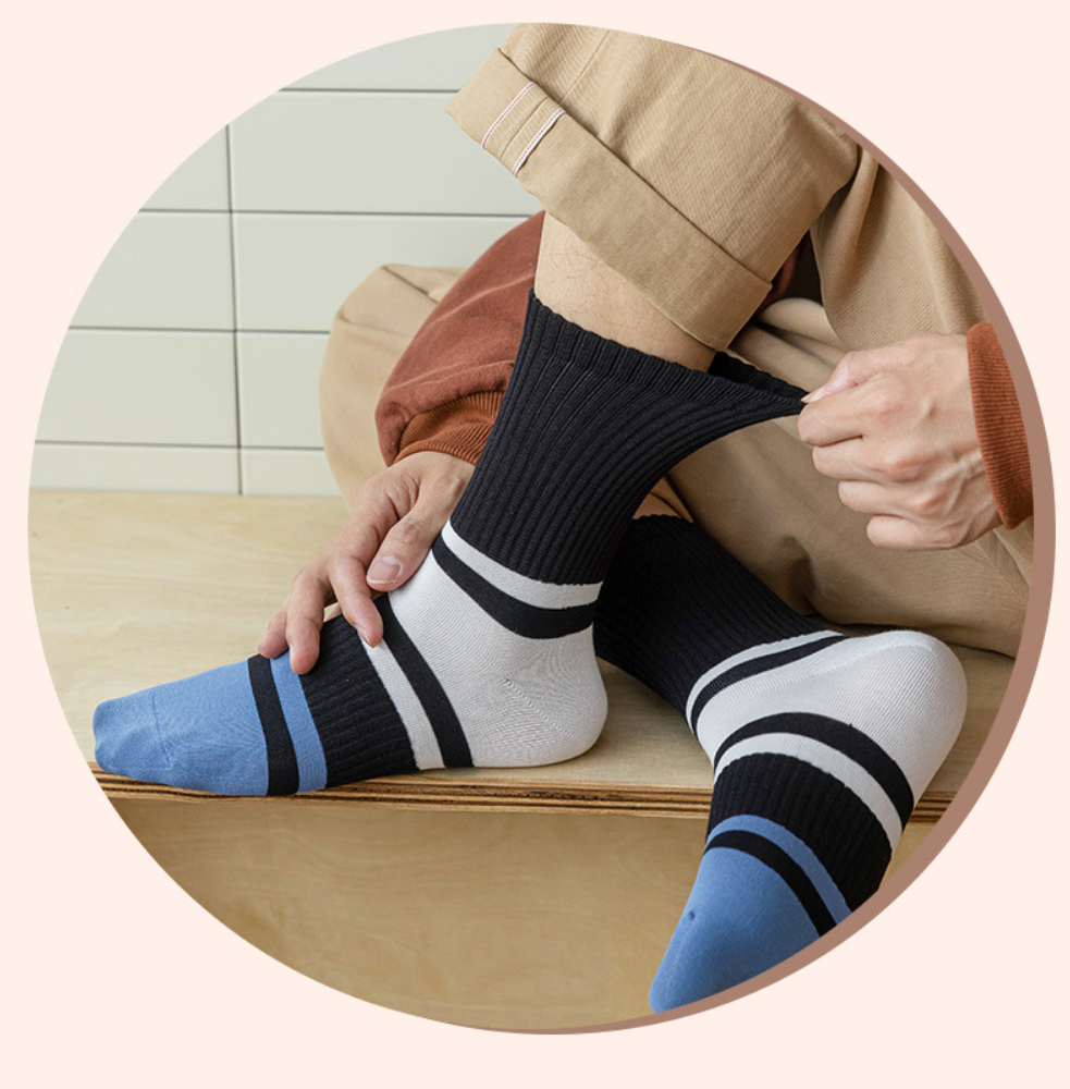 爆款(2雙裝)男條紋中筒棉襪(藏青)(均碼)