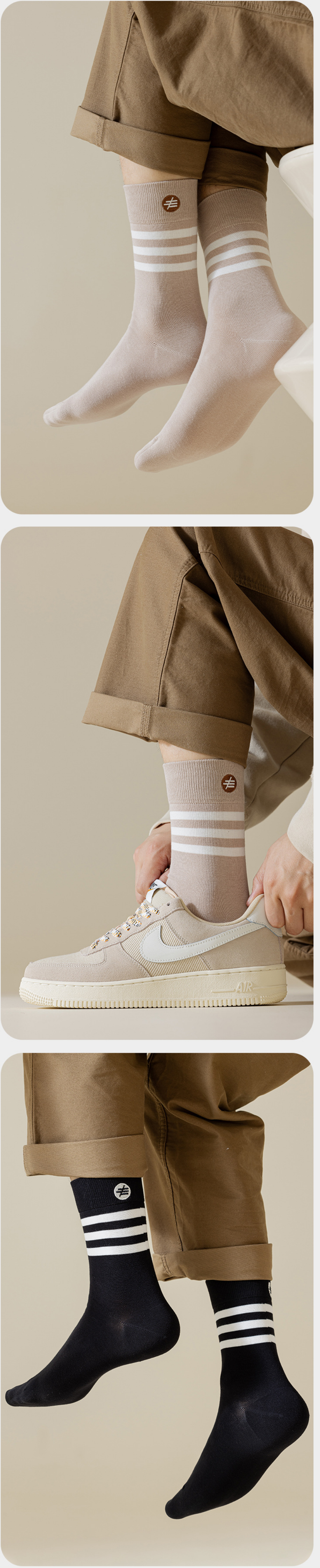 爆款(2雙裝)男三條槓刺繡中筒襪(黑色)(均碼)